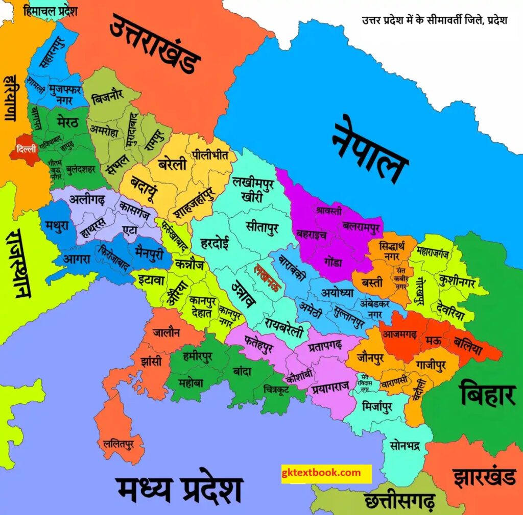 | उत्तर प्रदेश से सटे राज्यों की संख्या | 9 (8 राज्य + 1 केन्द्रशासित प्रदेश) |